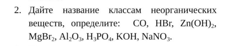 CO-оксид, це О;HBr-аш бром, кислота;Zn(OH)2-гидроксид(основание),цинк о аш дважды;MgBr2-магний бром два, кислота(хлорид брома);Al2O3-оксид, алюминий два О три;H3PO4-аш три пэ О четыри, фосфорная кислота;KOH-гидроксид(основание), калий о аш;NaNO3-натрий эн о три, соль.