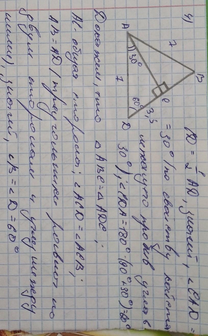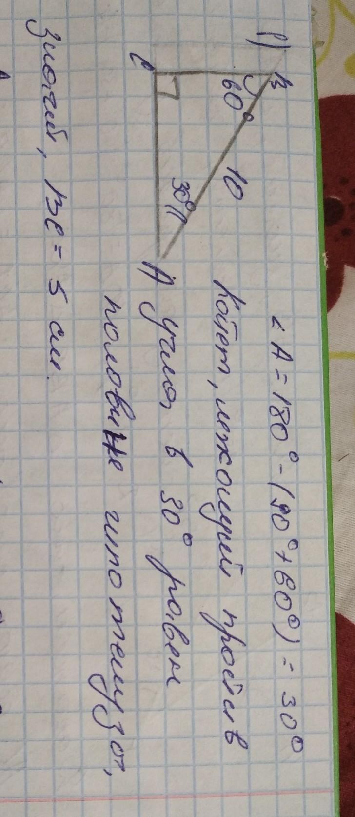 1. 1) сумма острых углов в прямоугольной треугольнике равна 90°( угол B=60°=>угол А=30°)
