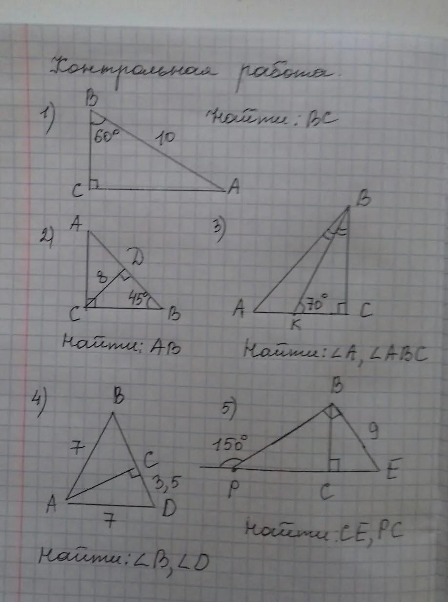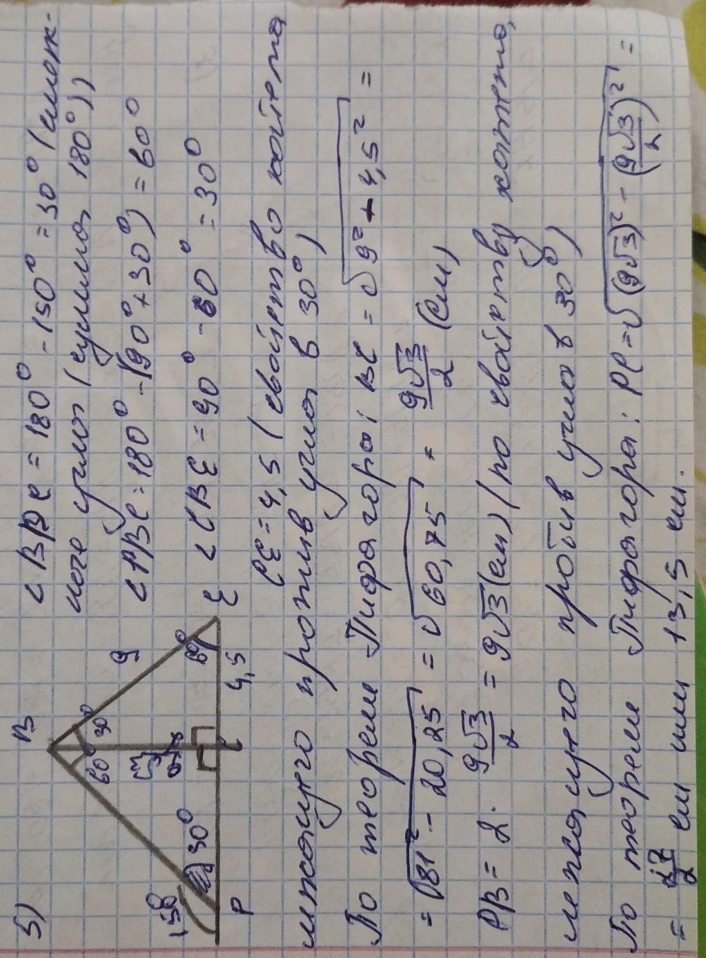 2)т.к. сторона лежащая против угла в 30° равна половине гипотенузы=>10:2=5