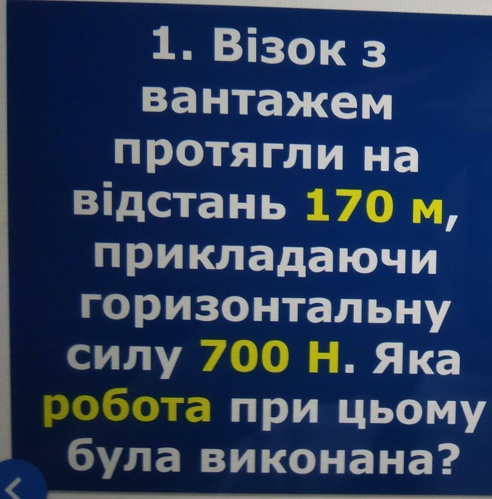 візок з вантажем протягом на відстань 170м , прикладаючи горизонтальну силу 700Н . Яка робота при цьому була виконана ?