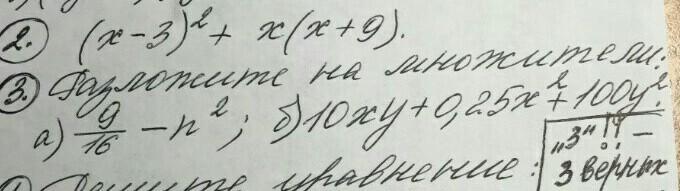 (x-3)^2+x(x+9)= x^2-9+x^2+9= 2x^2 ( 2x в квадрате)