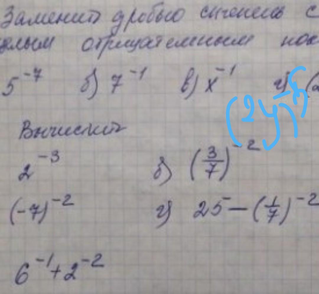 (2у)^-5= -2y * -2y * -2y * -2y* -2y = -32y^5