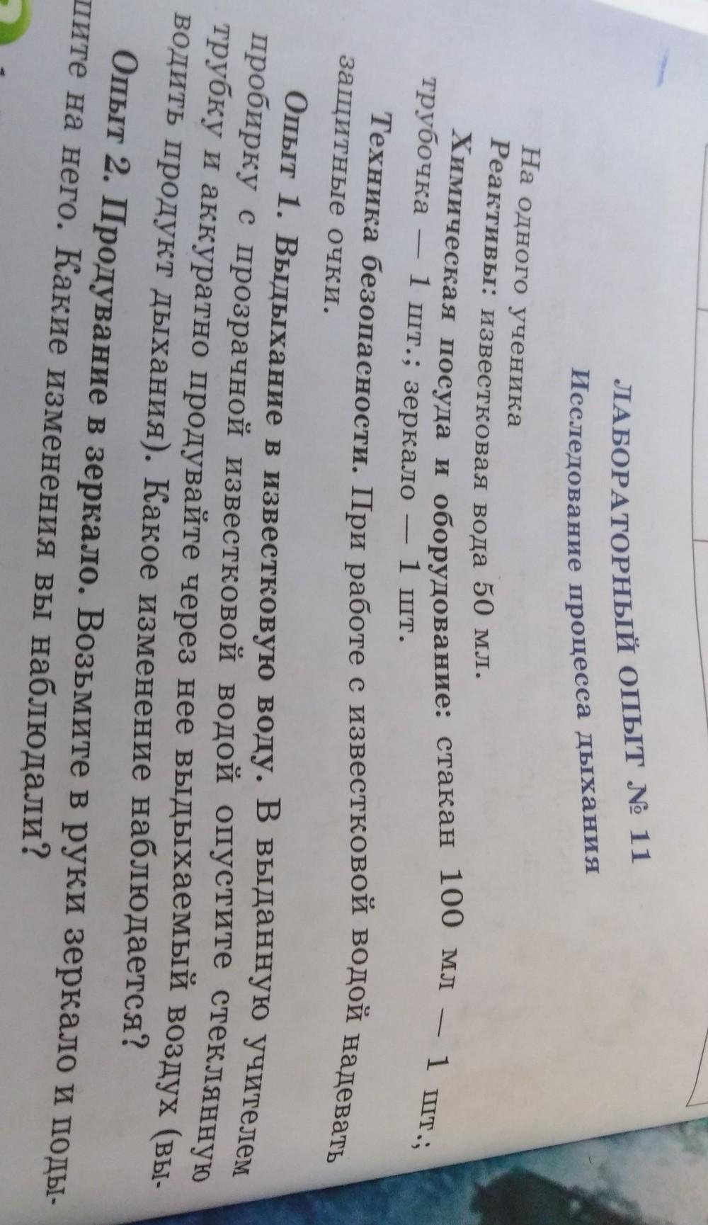 О т 1. Выдыхание в известковую воду. В выданную учителем