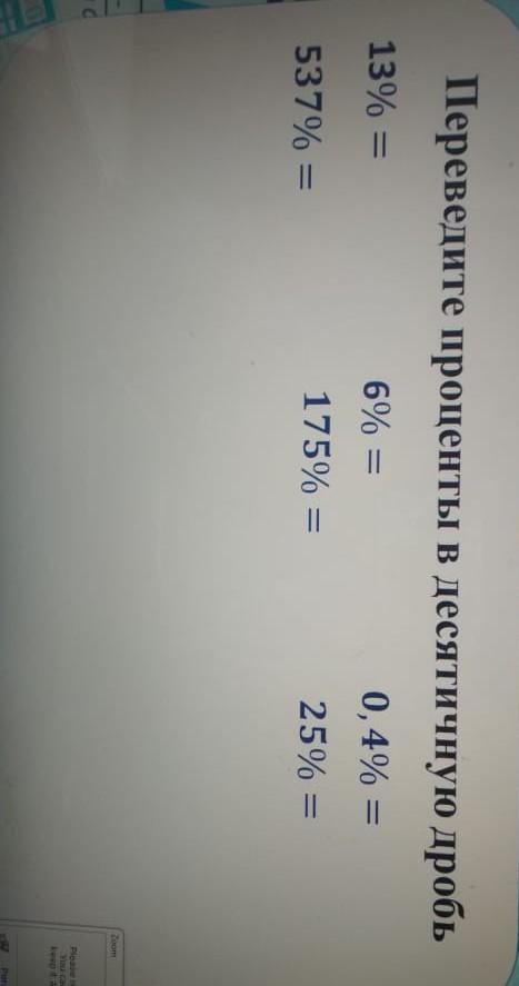 13пр.=0.13 537пр.=5.37 6=0.06 175=1.75 0.4=40пр. 25пр. = 0.25