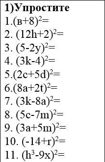 10)(-14+r)²=196-28r+r² здесь квадрат суммы, но так как -14, то перед 28 минус