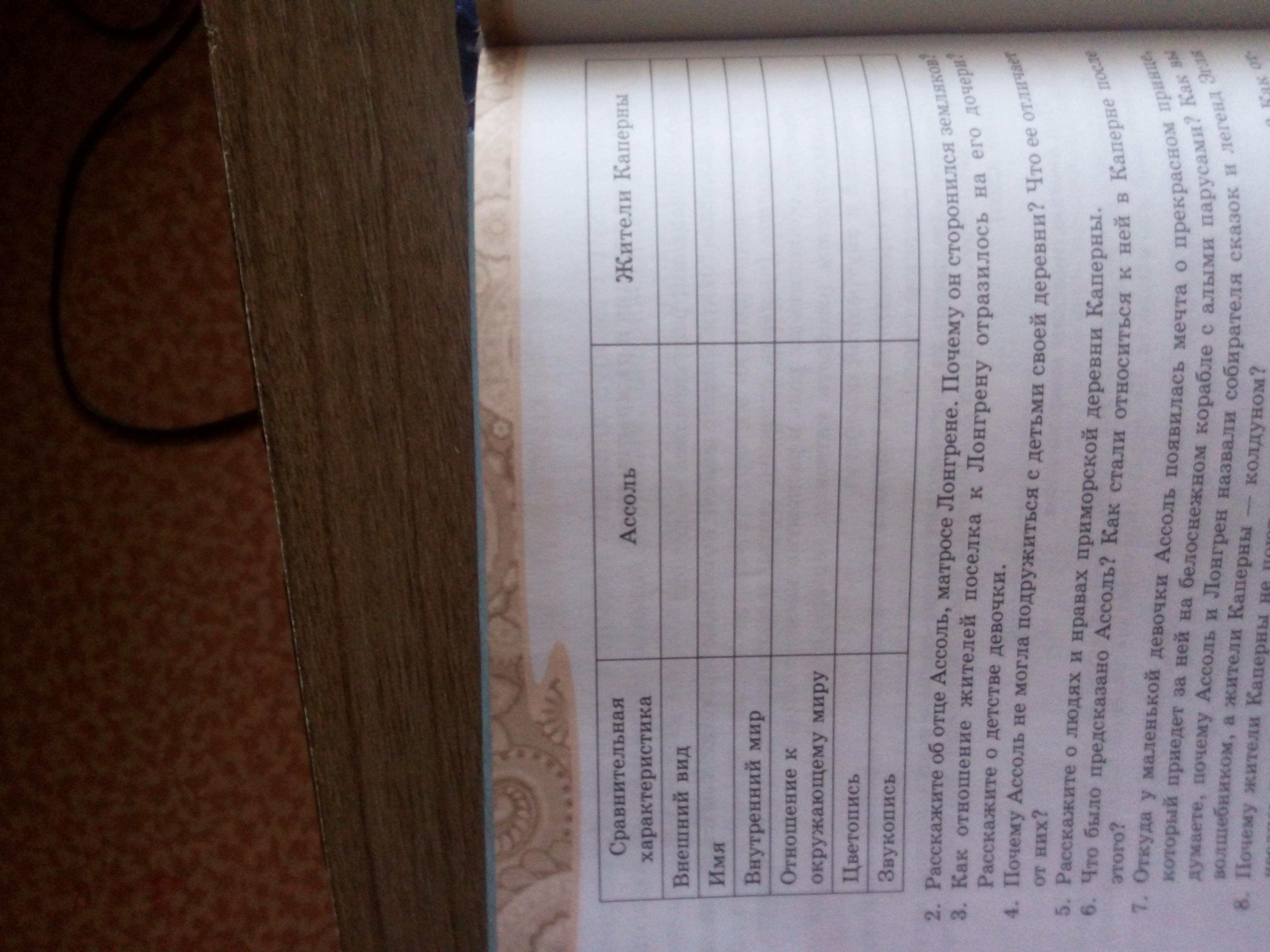 Сравните Ассоль и жителей Каперны по нижеследующим параметрам.Заполните таблицу: