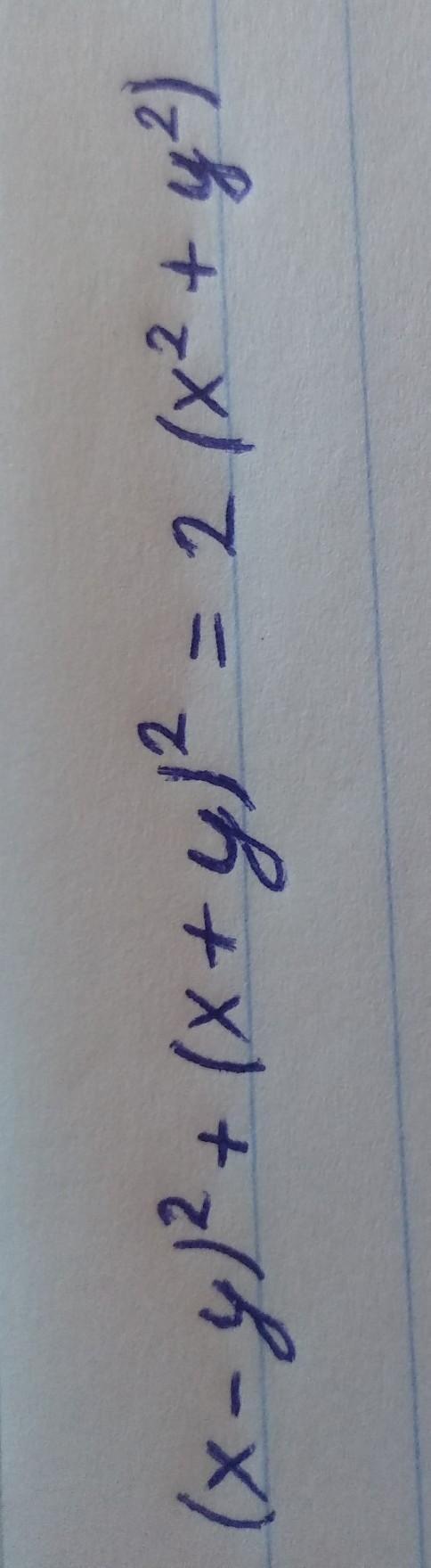 (x-y)²+(x+y)²=(x²-2xy+y²)+(x²+2xy+y²)=x²-2xy+y²+x²+2xy+y²=2x²+2y²=2(x²+y²)
