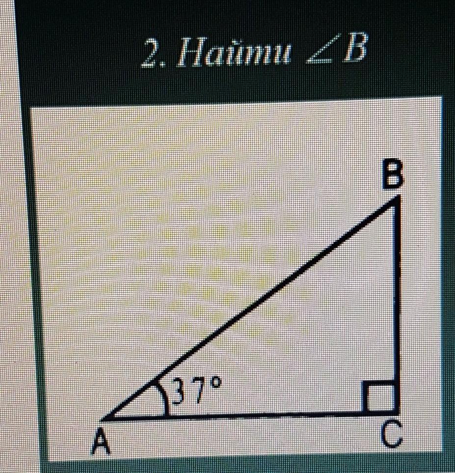 Пошаговое объяснение:сумма углов в треугольнике равно 180 градусам. прямой угол=90 градусов. А=37 градусов => В=180-90-37=53 градуса