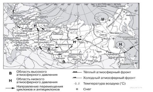 Карта погоды составлена на 18 апреля. В каком на показанных на карте городов
