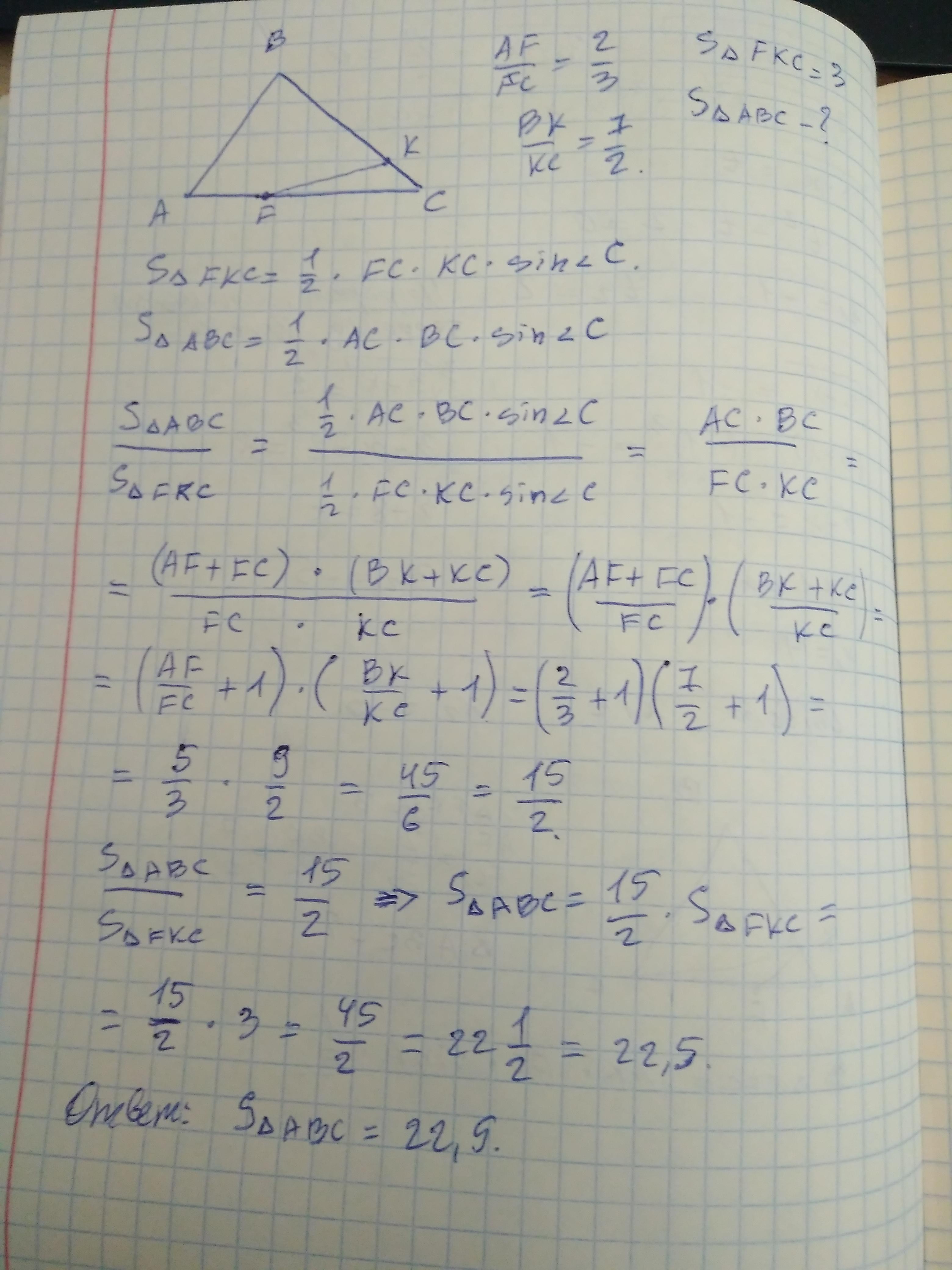 AF FC : 2:3 = и BK KC : 7:2 = . Найдите