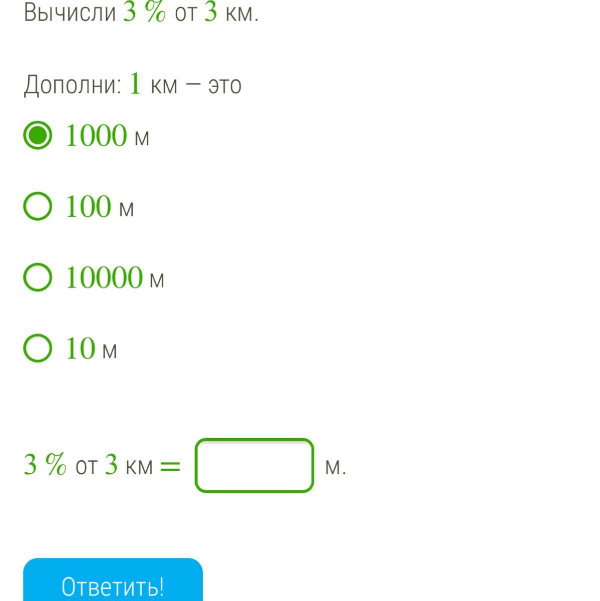 3км=100% значит,3000 м : 100 * 3 =90
