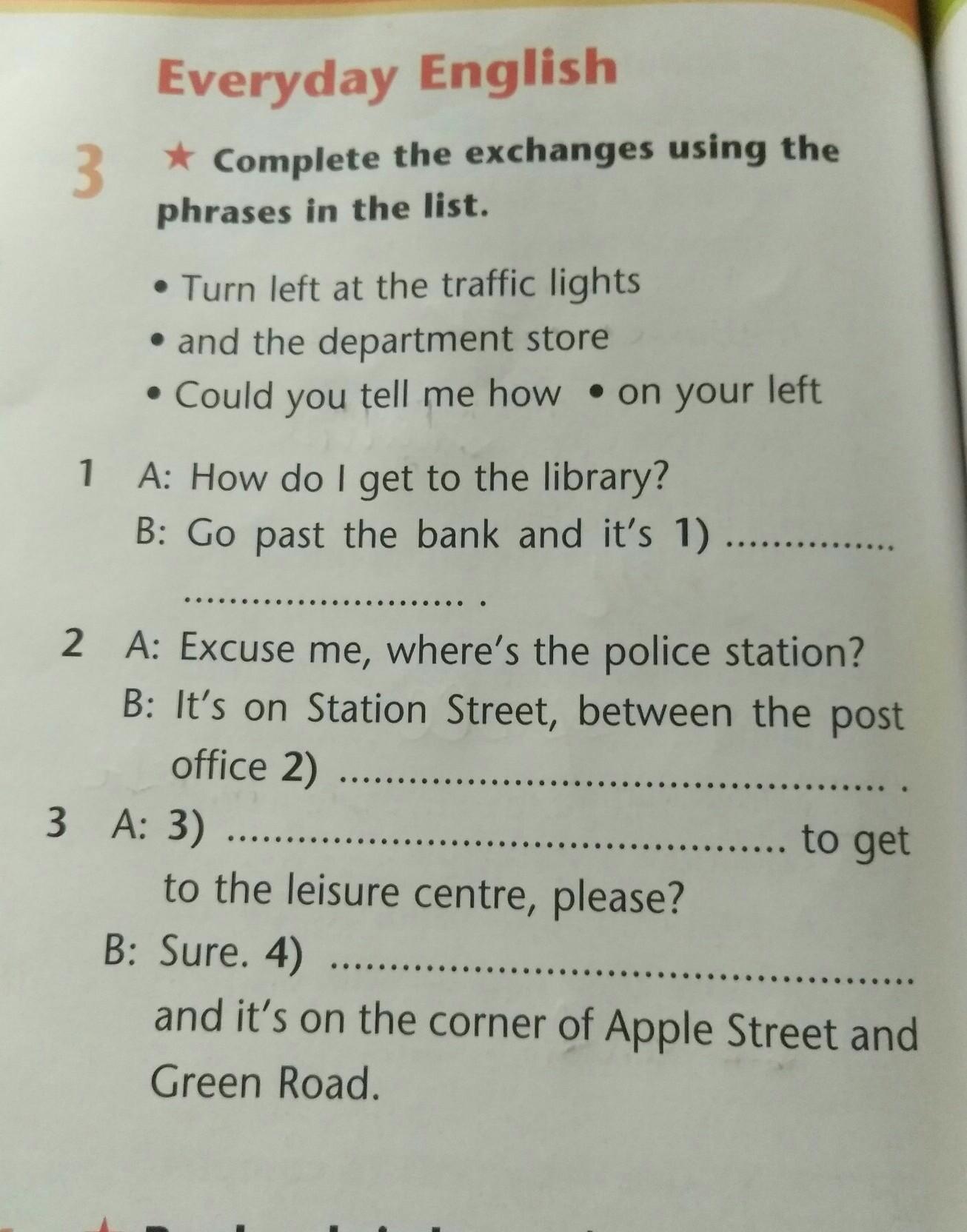 Complete the exchanges using the phrases in the List Turn left at traffic lights How do l get to the library