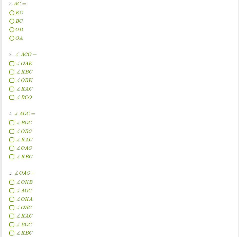 1.ОА, 2.ВС 3.ВСО, ОАК, ОВК 4.ВОС, КАС, КВС 5.ОВС