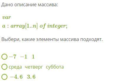тип Integer - целые числа. array of Integer -> Массив элементов типа integer. То бишь массив целых чисел.