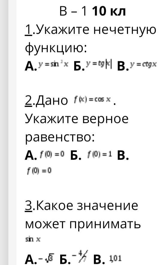 Помогите пожалуйста ответить на тест по тригонометрии 10 класс.