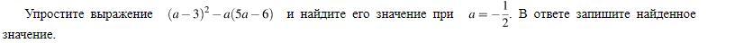 a= -\frac{1}{2} \\\\(a-3)^2-a(5a-6)=a^2-6a+9-5a^2+6a=\\=-4a^2+9=-4*(-\frac{1}{2})^2+9=8\\\\\boxed {(a-b)^2=a^2-2ab+b^2}