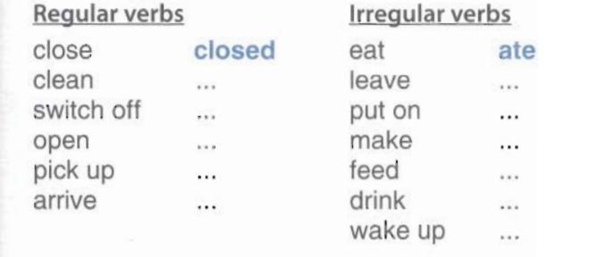 p. 109, ex. 7: Рядом с каждым словом запишите форму прошедшего простого времени.