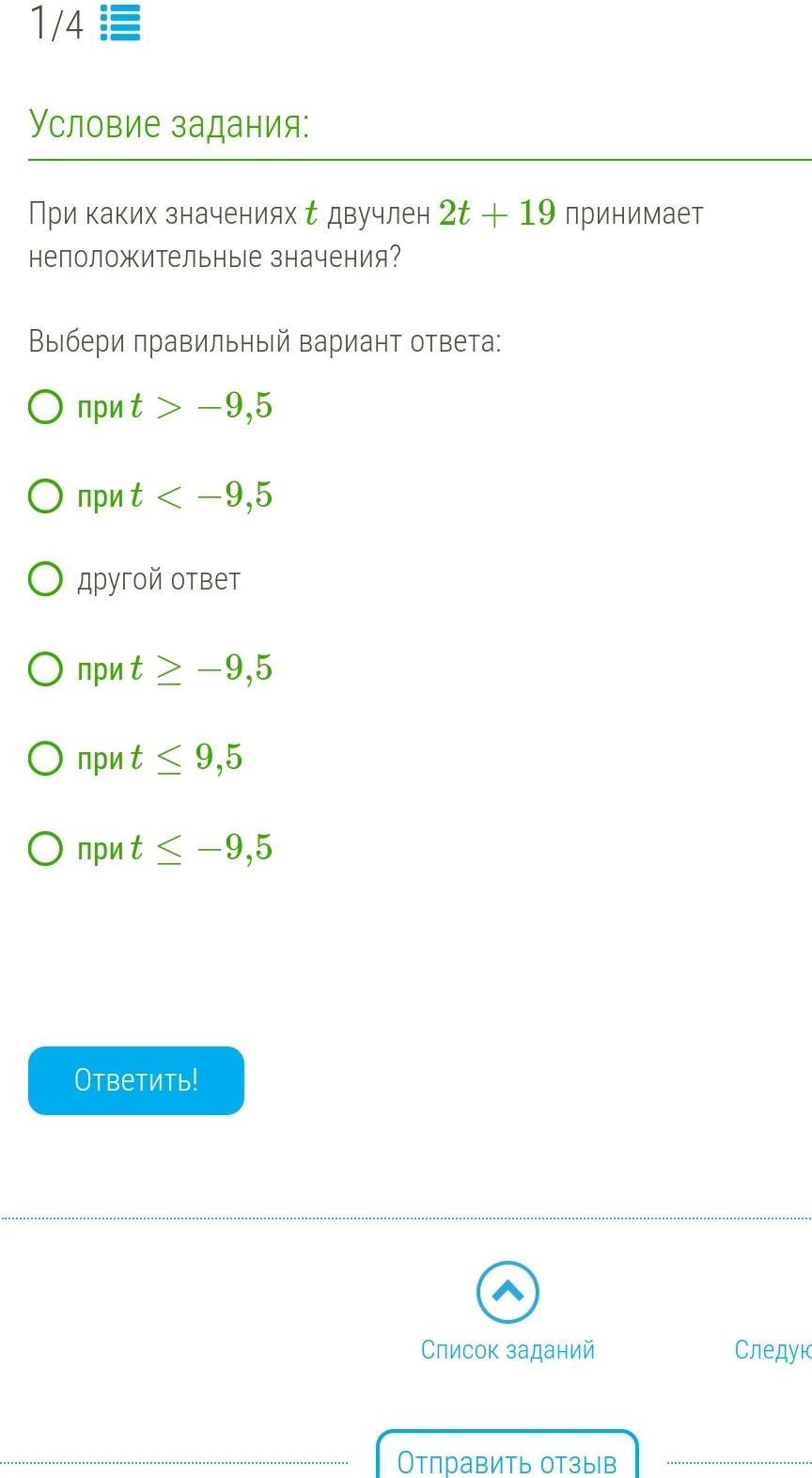 при t меньше или равно ( ближе к букве узкий конец галочки с черточкой))) 9.5