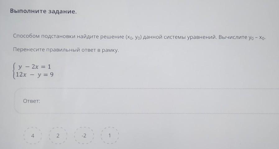 пожалуйста. способом подстановки найдите решение (х0,у0) данной системы уравнений.