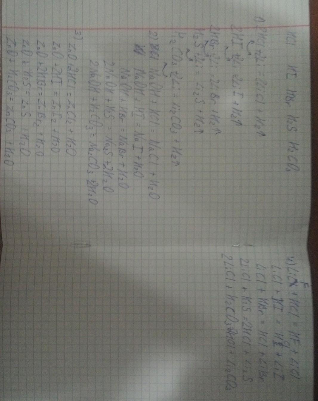 С каждой кислотой(HCL, HI, HBr, H2S H2CO3) Составьте типичные реакиции кислот их должно получится 20