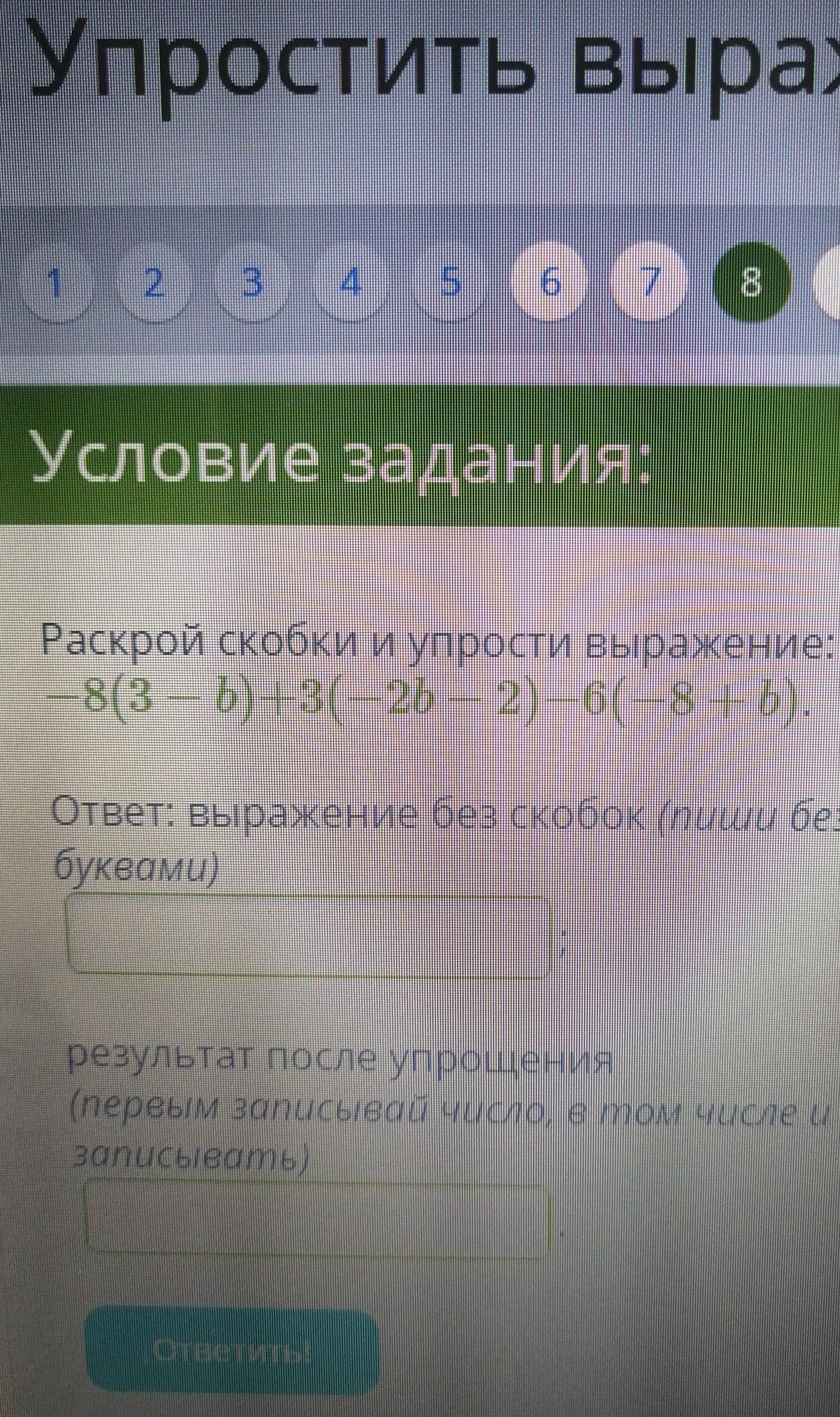 Ответ: - 8(3-b)+3(-2b-2)-6(-8+b)