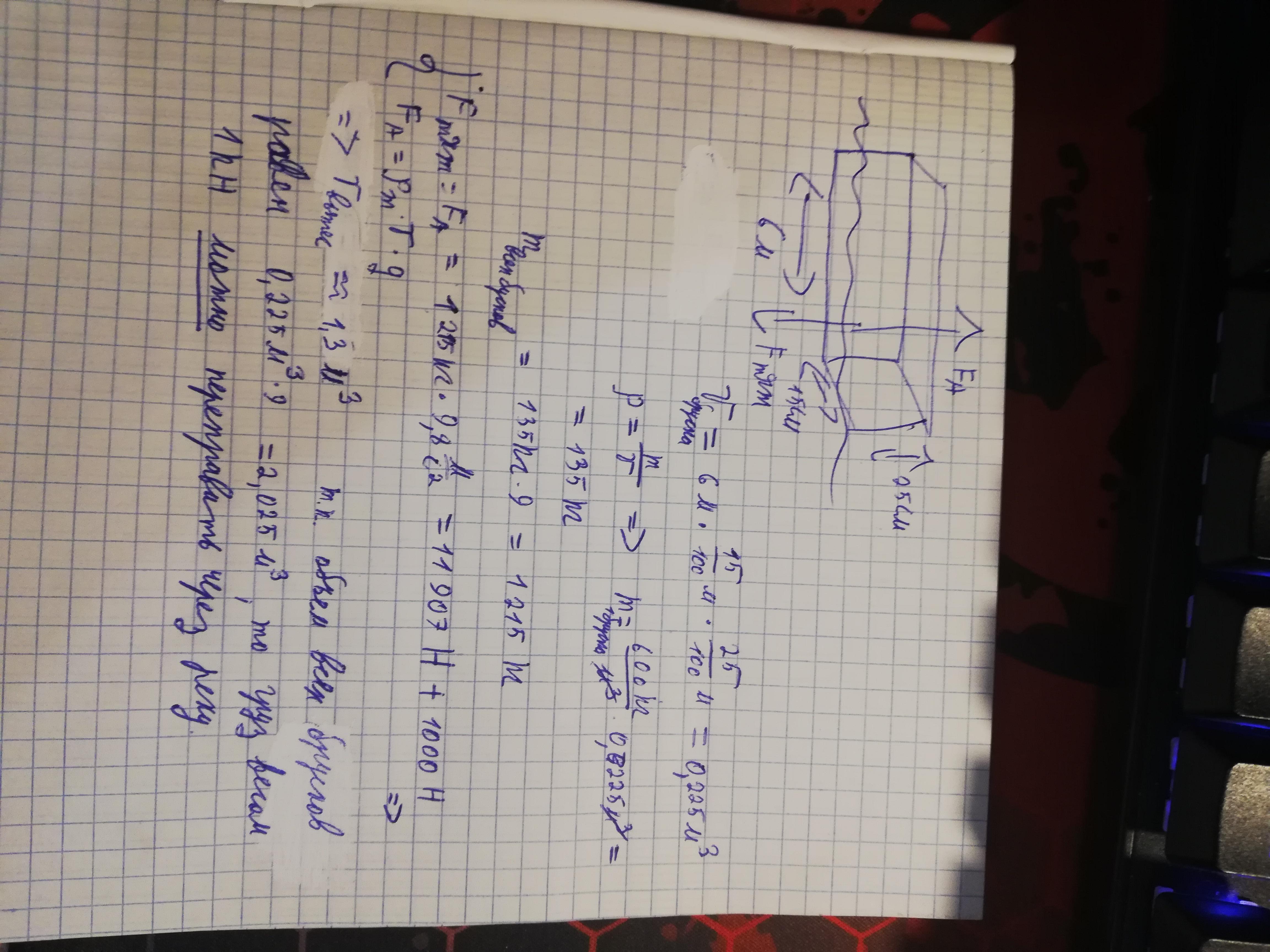 (Плотность древесины равнарели = 600кг/м". Принять g = 9,8 Н/кг).