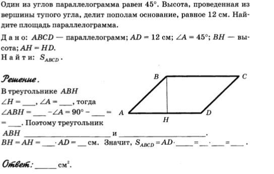 АH=AD/2=12/2=6 BH=AH*tg45°=AH=6см