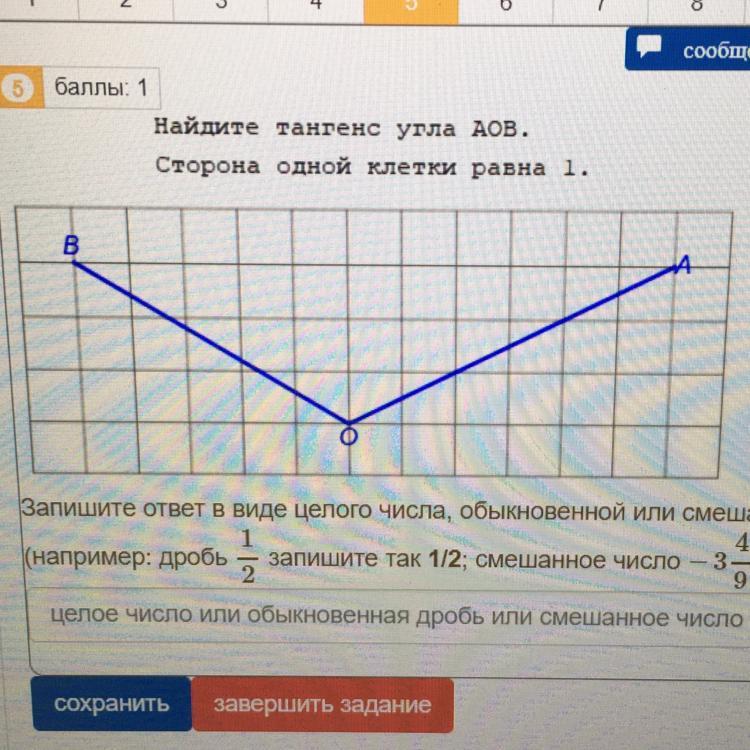 СРОЧНО!!!Найдите тангенс угла AOB. Сторона одной клетки равна 1