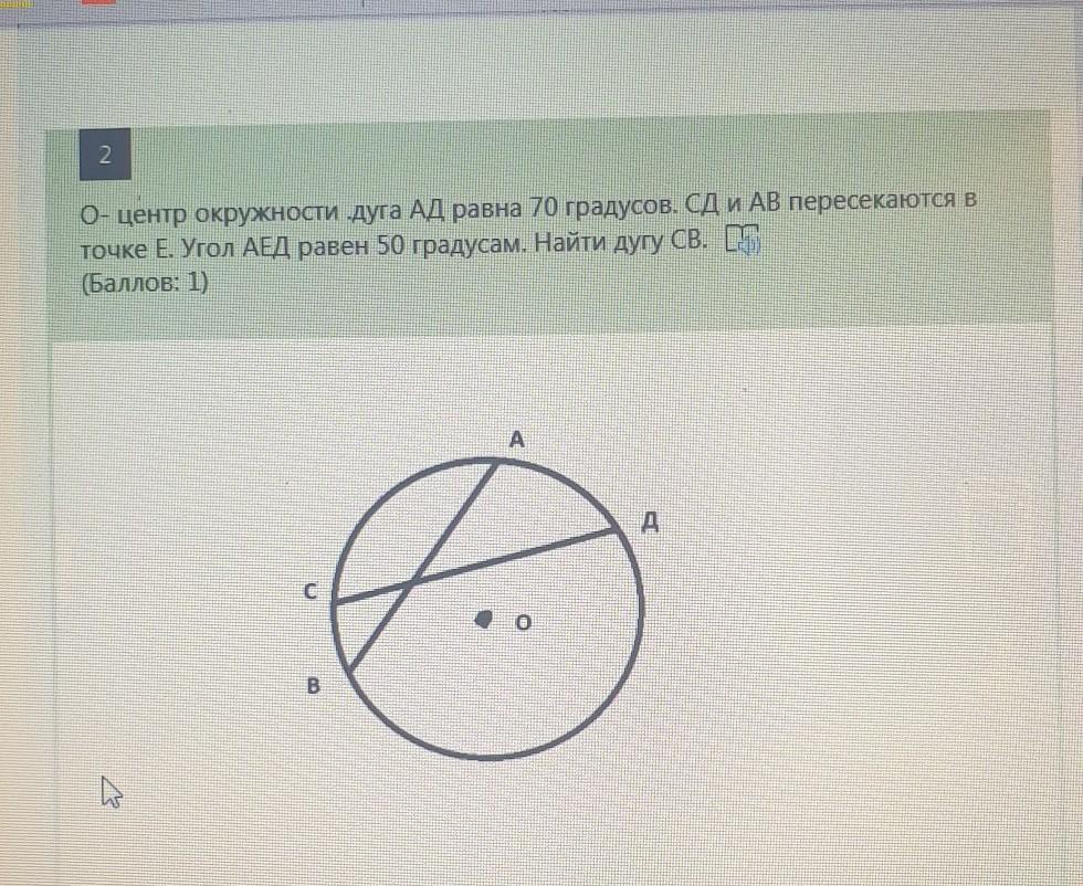 дуга ад равна 70 градусов сд и аб пересекаются в точке е