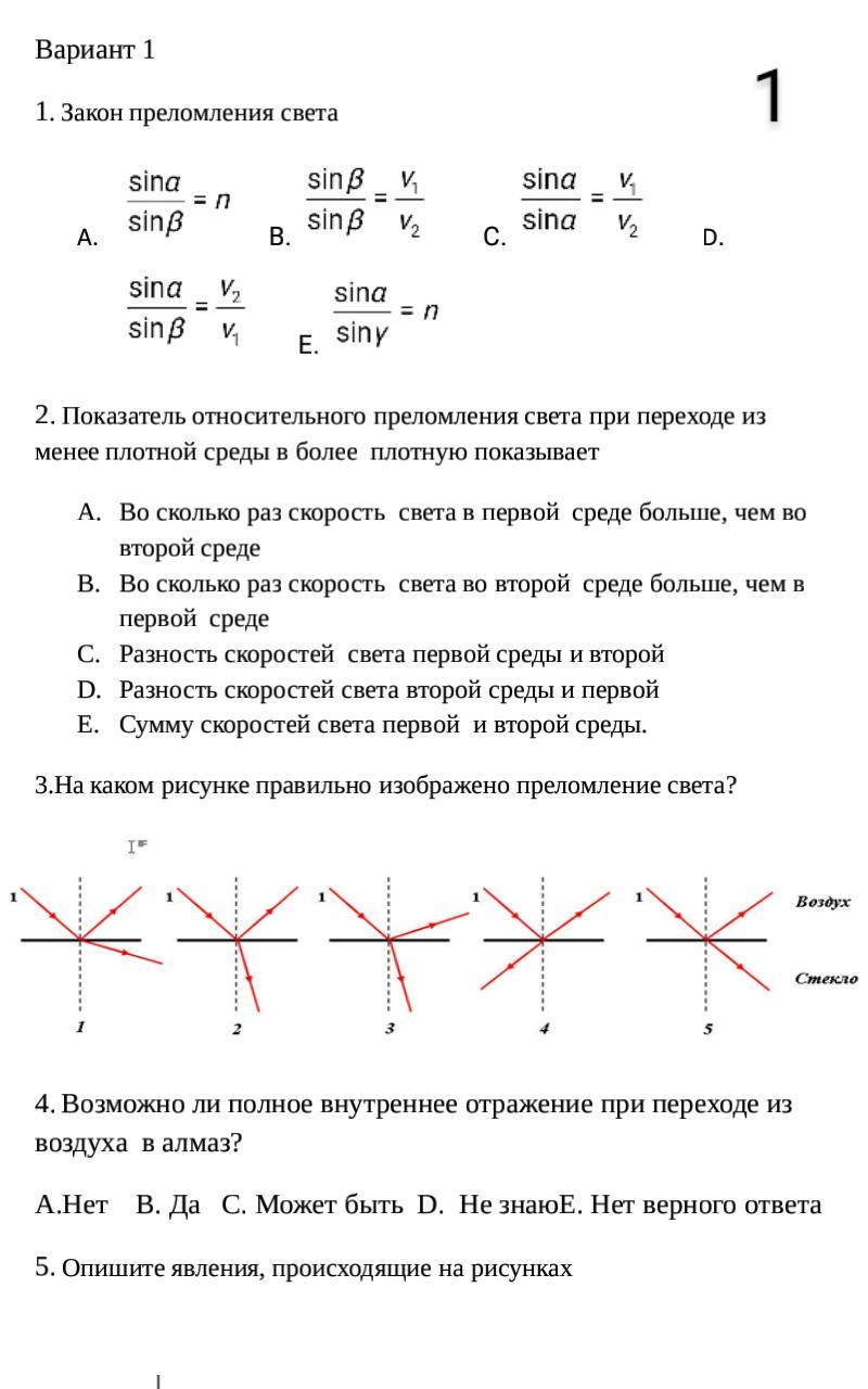 1. Закон преломления света