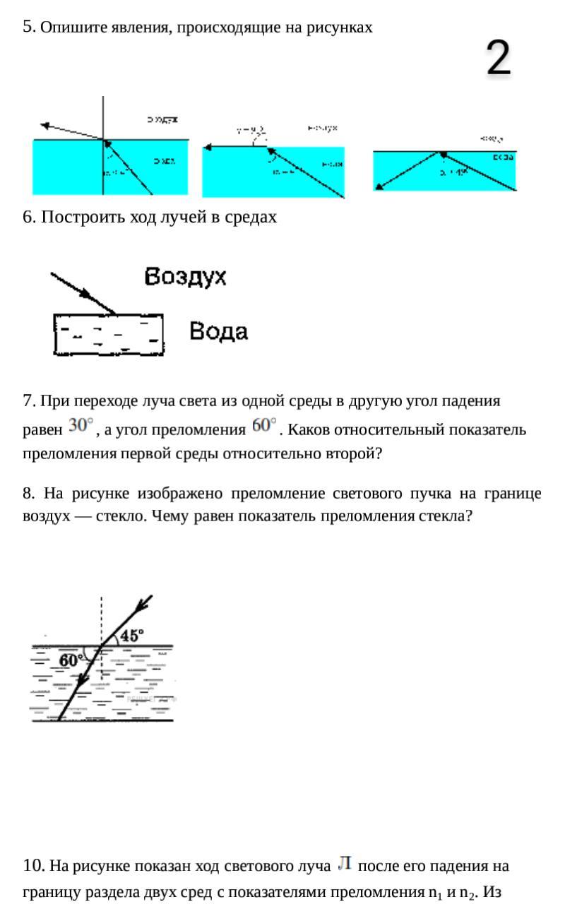 7. При переходе луча света из одной среды в другую угол падения равен , а угол преломления . Каков относительный показатель преломления первой среды относительно второй?