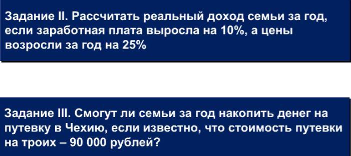 2. Рассчитать реальный доход семьи за год, если заработная плата выросла на 10%, а цены возросли за год на 25%