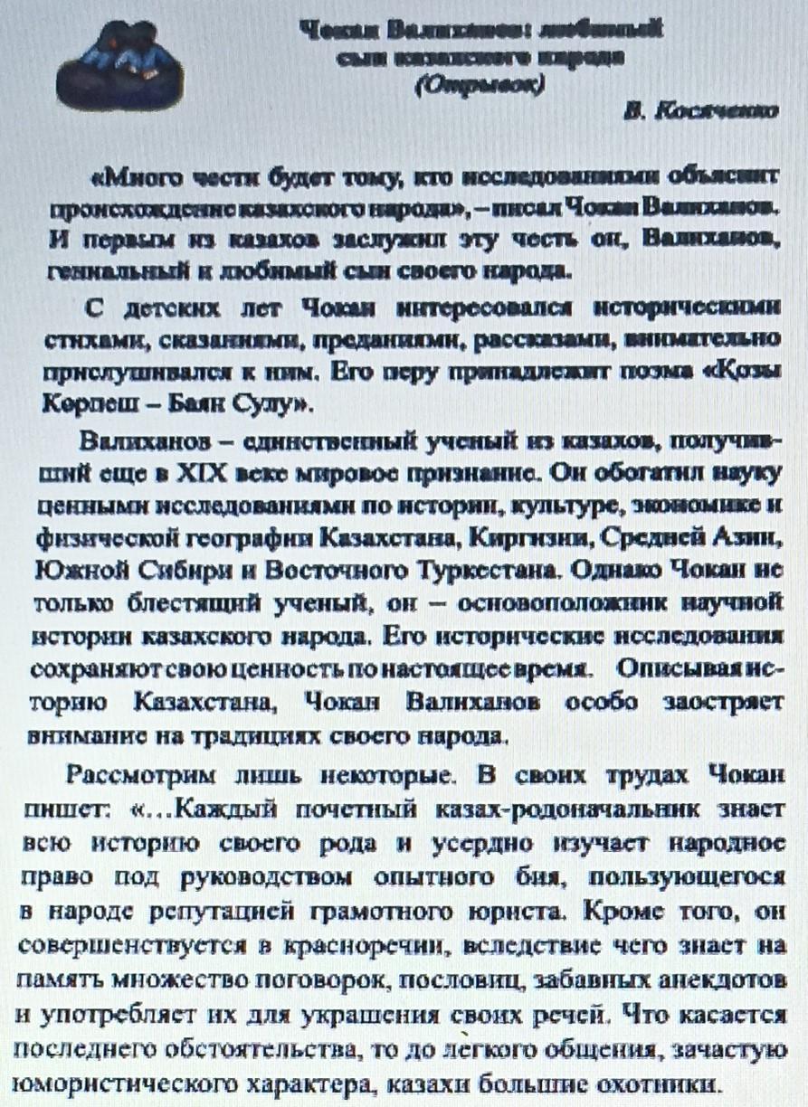 1. Как вы понимаете слова Чокана Валиханова: «Много чести будет тому, кто исследованиями объяснит происхождение казахского народа»?