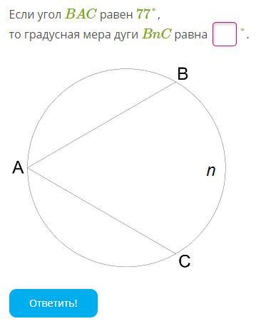 Поскольку угол BAC - вписанный, то он равен половине дуги на которую он опирается, это значит, что Градусная мера дуги равна 77*2=154 градуса