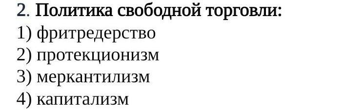 2. Политика свободной торговли: