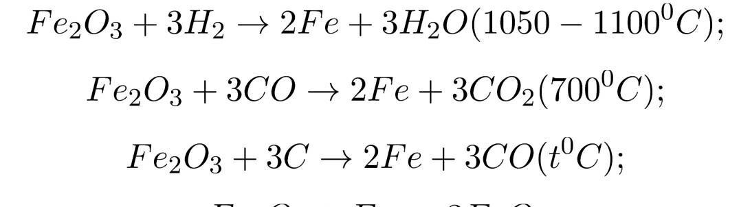 Восстанавливается водородом, монооксидом углерода, коксом до железа (как из Fe2O3 получить Fe?)