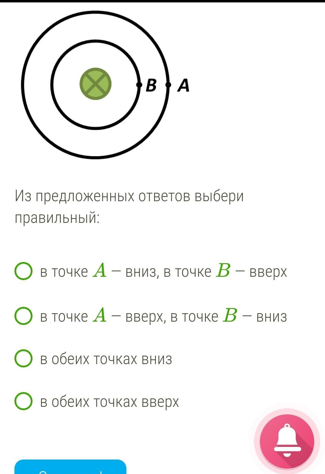 В твоём случае ток движется от нас ( это условно обозначается кружком ), следовательно линии магнитного поля движутся по часовой стрелке. Ответ: в обеих точках вниз