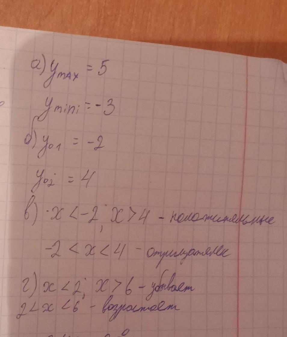 в) Промежутки, на которых значения функции положительны;отрицательны;