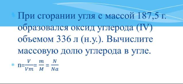 w(C) = m(C)/m(угля)*100% = 180г/187,5г*100% = 96%