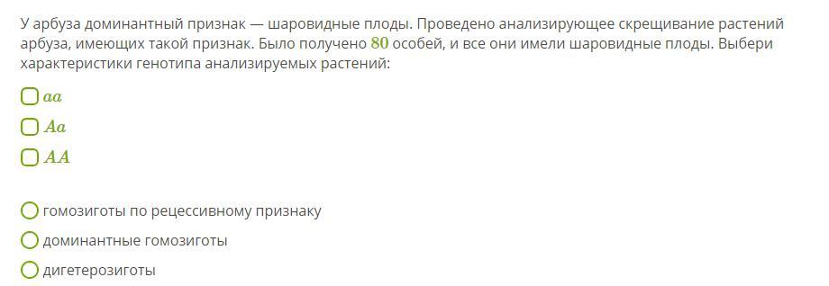 4. У арбуза... ⬜ Аа ⚪ дигетерозиготы.