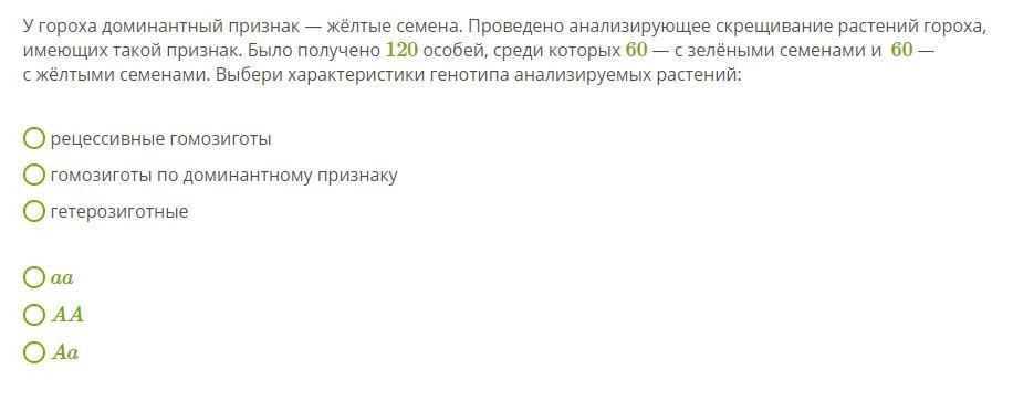 5. У гороха... ⚪ гомозиготы по домин.приз.; ⬜ Аа