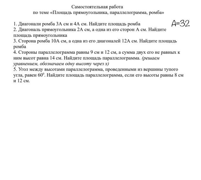 №2 Площадь ромба 24 см², а одна и его диагональ 8 см.