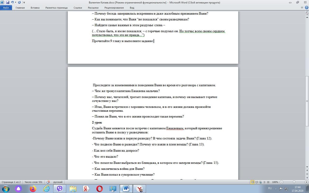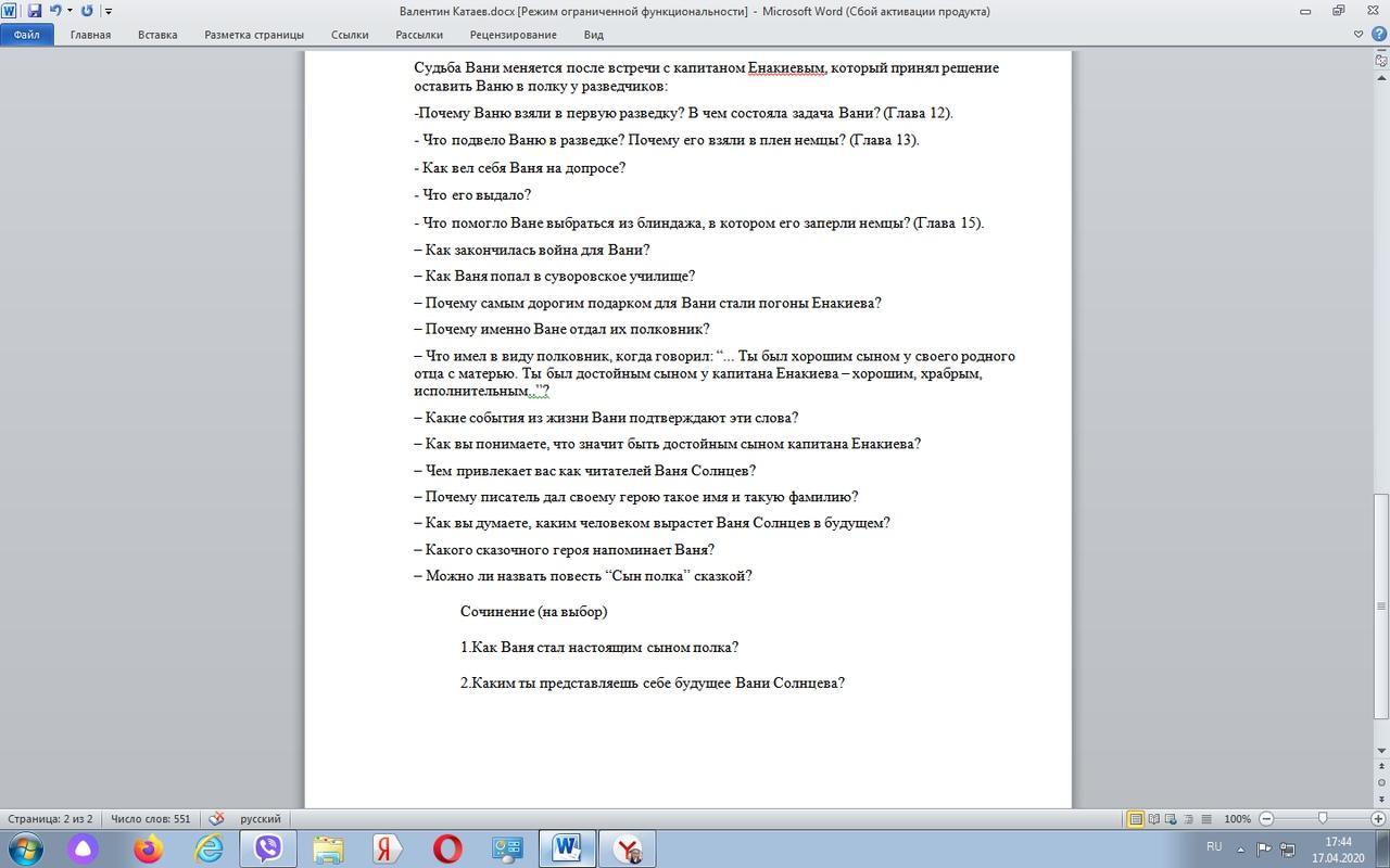 8)Когда мальчика впервые увидел капитан, он ему напомнил о своей семье. Так как он сразу понял, что мальчику оставаться тут нельзя, он отправил его к Биденко. Ваня, попав к Биденко, сбежал, так как считал, что его отправление в тыл недоразумение. Он хотел поговорить с капитаном Енакиевым по поводу этого. Ваня рассказал ему о том, как его нашли разведчики и как он сбежал от Биденко. Капитан привез его обратно на батарею. Так Ваня стал «сыном полка». Его полюбили все, так он был лучиком солнца, позже капитан захочет его усыновить.