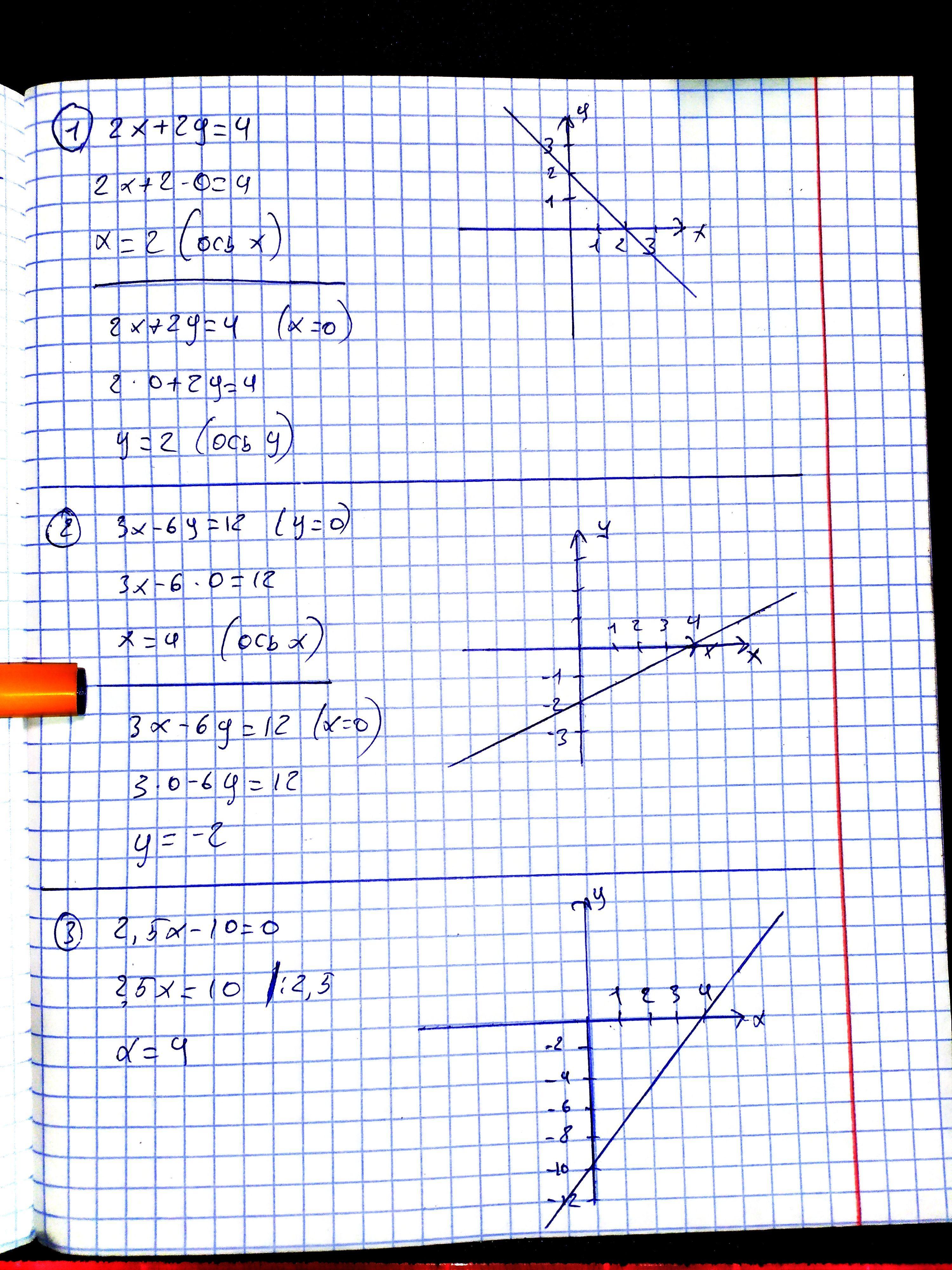 1) 2x+2y=4 2)3x-6y=12. 3)2,5x-10=0. 4) 0,2+1=0. 5) x-y+5=2. сделайте пожалуйста графики уравнений