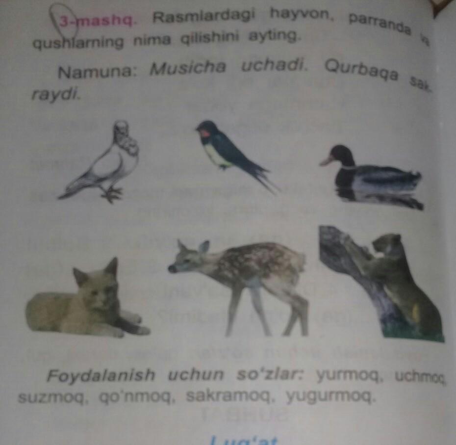 Foydalanish uchun so'zlar: yurmoq, uchmoq,