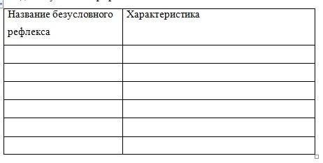 Сделаю немного по другому, но по ответу сам сделаешь как тебе сказали. Но я бы предложил сначала начертить таблицу, сделать столбик "Типы рефлексов", потом следующий столбик "Название безусловного рефлекса" и потом уже "Характеристика"