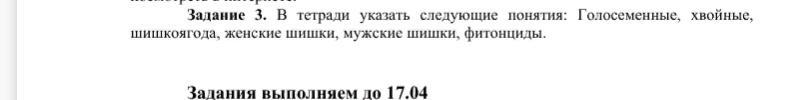 В тетради указать следующие понятия: Голосеменные, хвойные,