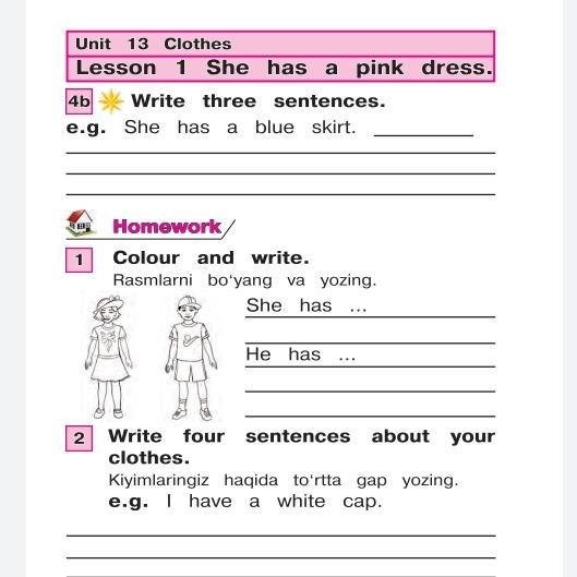 Объяснение:в последнем задании там надо было описать свою одежду.