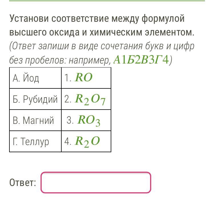 Установи соответствие между формулой высшего оксида и химическим элементом.