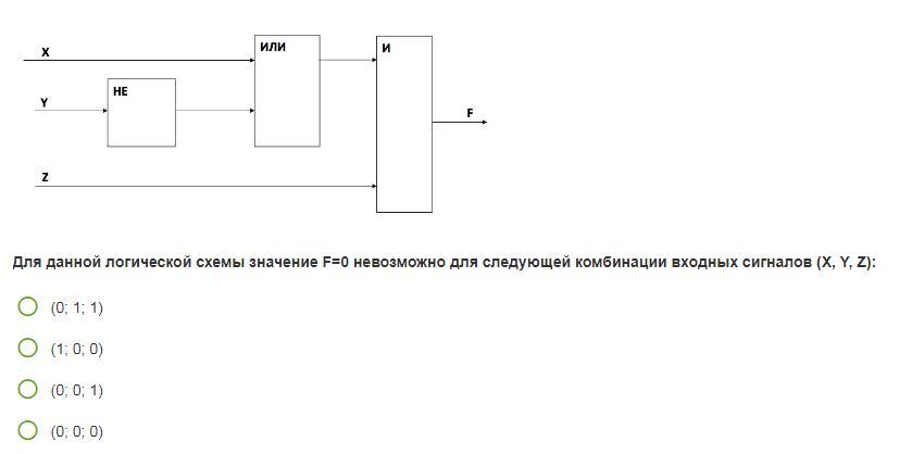 При комбинации логических значений 0,0,1 выходная функция никогда не станет ложной, соответственно при данном значении F≠0, что удовлетворяет условию задачи.